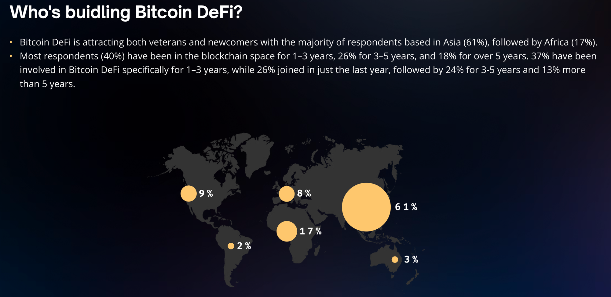 Takeaway #2: Asia is a major market for Bitcoin DeFi, and a quarter of builders just started working in the space this year