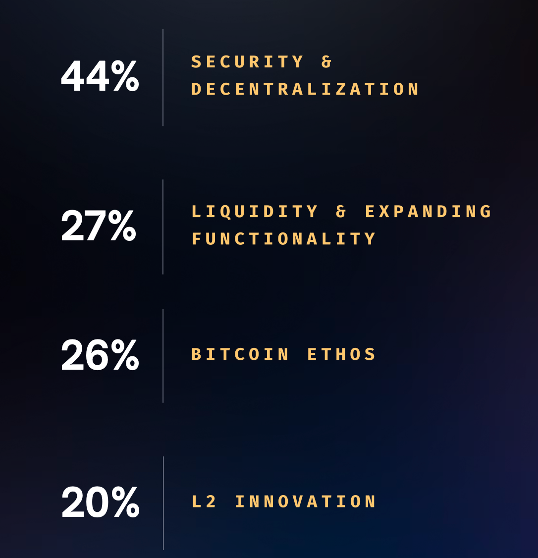 Takeaway #3: DeFi builders choose Bitcoin for its security and decentralization most of all, followed by its liquidity